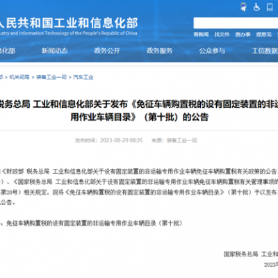 关于《免征车辆购置税的设有固定装置的非运输专用作业车辆目录》第十批
